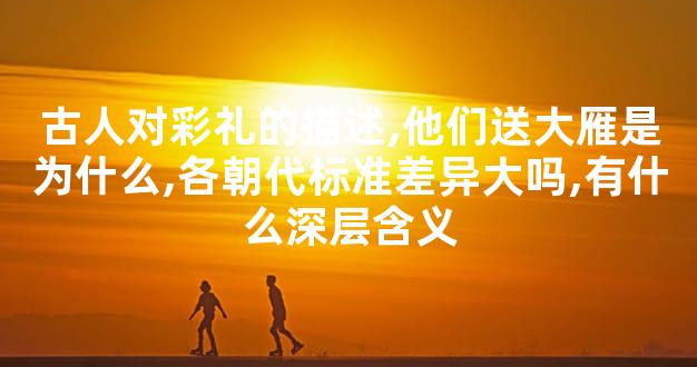 ——其实彩礼这个习俗,早在西周就已经很规范了。那时候结婚要走“六礼”程序,其中“纳征”就是下聘礼,但古人更看重的是寓意而不是价值。比如大雁为什么是热门彩礼?因为大雁守时守信、一生一侣,这或许暗示着古人对婚姻忠诚的期待。