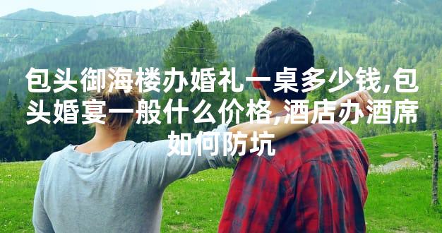 ??婚宴价格这东西真的没个准数??,同样是包头市的酒店,普通酒店一桌1000元左右就能搞定,中档酒店得2000到5000元,高档酒店可能就要6000到10000元了。御海楼在包头算是中高档酒店吧,我估计他们的婚宴价格应该在3000到4000元这个区间。不过话说回来,这个价格只是菜品的钱,还有很多隐藏费用可能等你发现呢。